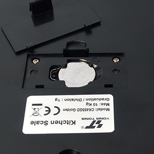 - Kitchen scale includes 1 x CR2032 Battery. Features a low battery indicator with auto-off function