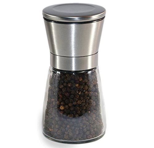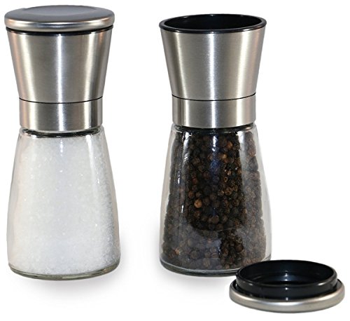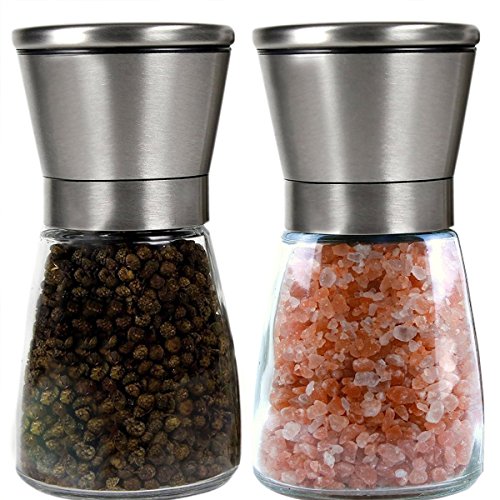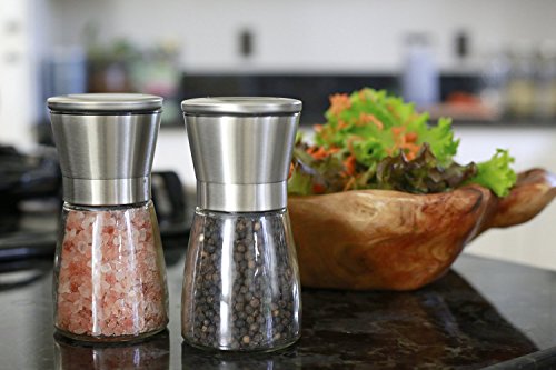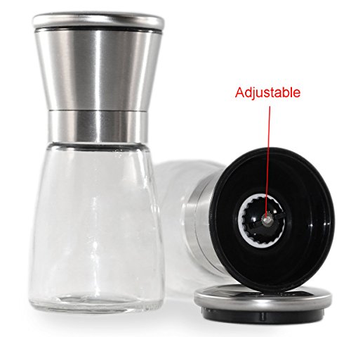 YYGIFT Adjustable Coarseness Brushed Stainless Steel Salt and Pepper Mill Grinder With Glass Base Bottle for Kitchen Spices