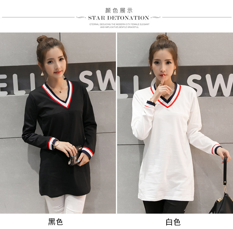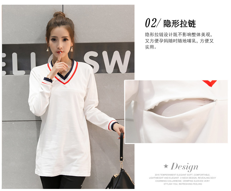 产后外出长袖哺乳衣T恤春秋装上衣时尚大码喂奶衣秋季打底哺乳装