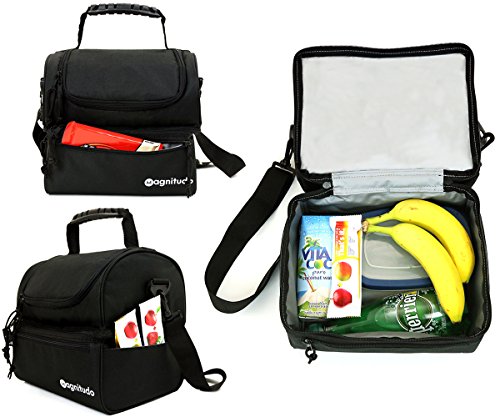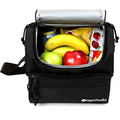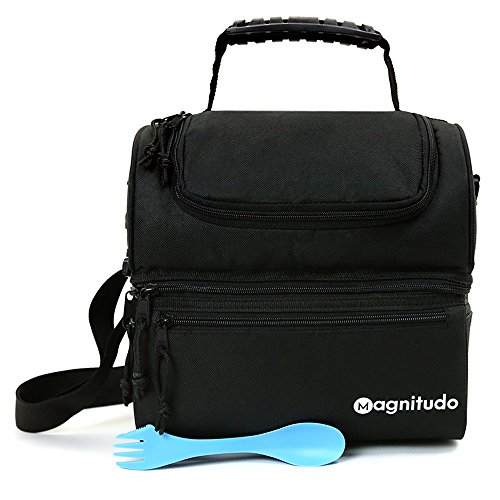 -. Title : Extra Strong YKK Zippers Premium Lunch Bag by Magnitudo – Insulated, Modern & Stylish Double Deck Cooler Tote for Adults, Men & Women, now with Complimentary SPORK