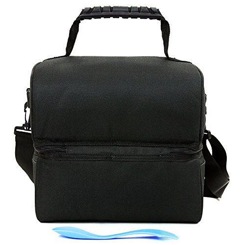 -. Feature : ULTRA STRONG YKK ZIPPERS & INSULATED PEVA LINING - The high-end quality YKK, dual zippers will not jam or break, while the eco-friendly, interior, insulated PEVA lining is food safe and can be easily wiped clean for your maximum convenience. / BONUS SPORK INCLUDED COMPLIMENTARY - Our insulated lunch bag comes fully complete with a FREE handy spork that serves both as a fork and spoon. / ALWAYS HAVE YOUR MEALS WITH YOU - Thanks to this reusable lunch box, now you can enjoy your meals almost anywhere; the PU handle strap and the detachable shoulder strap make this handy bag easy to carry with you wherever you go. / KEEP BOTH WARM & COLD FOODS AT YOUR DESIRED TEMPERATURE - No need to worry about your fruit salad getting warm and mushy or your steak and potatoes meal getting cold and almost impossible to eat. Our insulated bag has two ample-spaced, easy to access compartments and it will ensure that you can enjoy your meals like you've just made them. / ALL THE SPACE YOU NEED - This thermal tote bag features two large compartments, one top and one bottom, which are ideal for keeping your breakfast, dinner, lunch, salads, fruits, and beverages. Additionally, it has one front zipper pocket for your utensils and two side-ones for your valuables.