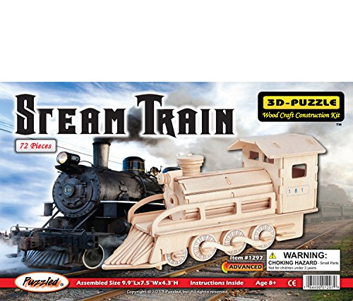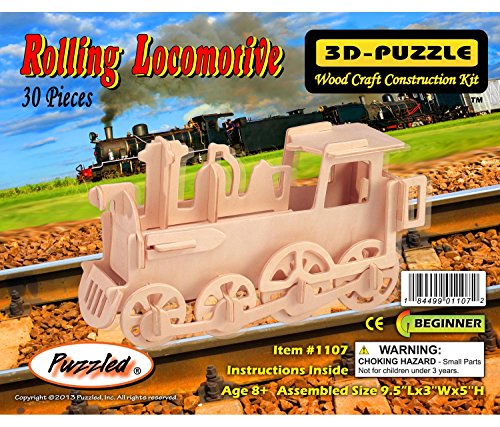 -. Binding : Office Product -. Brand : Puzzled -. EAN : 0788679198340 -. Feature : Assembly instructions inside / Great educational tool for quality time for you and your family / Made from plywood / Age 8+ / Assembly size 9.5''Lx3''Wx5''H -. Label : Puzzled, Inc. -. Manufacturer : Puzzled, Inc. -. MPN : K1107-1297-1608 -. PackageQuantity : 3 -. PartNumber : K1107-1297-1608 -. ProductGroup : Toy -. ProductTypeName : TOYS_AND_GAMES -. Publisher : Puzzled, Inc. -. Studio : Puzzled, Inc. -. Title : Puzzled Rolling Locomotive, Steam Train and Train Wooden 3D Puzzle Construction Kit -. UPC : 788679198340