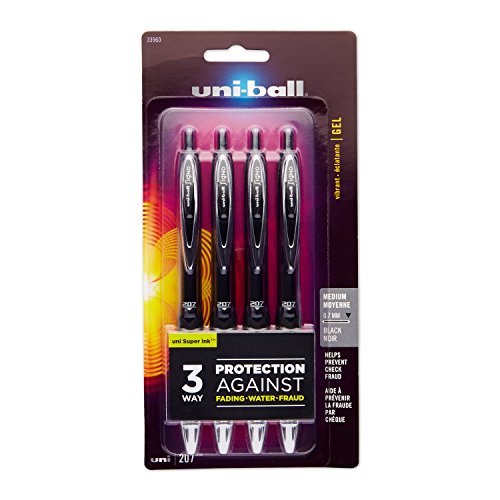 -. Title : uni-ball Signo 207 Retractable Gel Pens, Medium Point, Black Ink, 4-Pack (33960PP)