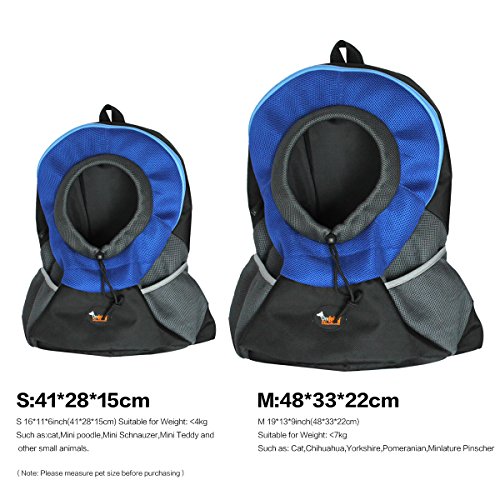 -. Feature : 1. Easy to travel: Gives you more convenient when you are in the mall, travelling, shopping. / 2. Back wearing comfort: Trendy, light and breathable, 7 cm wide shoulder belts let you feel more comfortable. / 3. Gives pets a sense of security: Oxford on the Bottom strong load and more safety support for pets. / 4.Durable: The strong Oxford, breathable fabric, bottom waterproof , easy to clean. / 5. Details: Reinforced sewing more durable, adjustable strap buckle design easy to wear off. The built-in hanging buckle connect the chest strap, according to the head size to adjust drawstring.