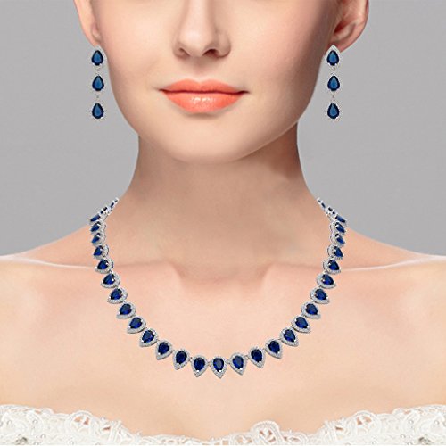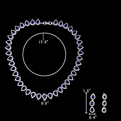 -. Feature : Made of crafted environmental friendly Cubic Zirconia, this jewelry shines with grace and beauty. And the metal surface is of high polished finish. / Main Color: Sapphire Color; Necklace Size: 17.5 inch L x 0.5 inch W; Earrings Size: 1.5 inch L x 0.4 inch W; Total Weight: 50g / A ideal accessory to your outfit or as an appropriate gift, e.g.for your Lover, Girlfriend, Wife, Mother, Daughter, Sister, Fiancee, Couple, Valentine or Best Friend,etc; Suitable for daily wear, ball, party, anniversary, prom, graduation, birthday or any special occasions. / The item in picture with ornament is same as the real object without PS. / Exquisite Gift Wrap: Gift Box + Gift Velvet Bag.