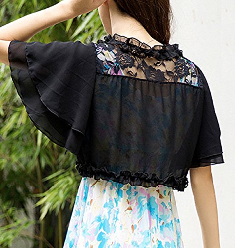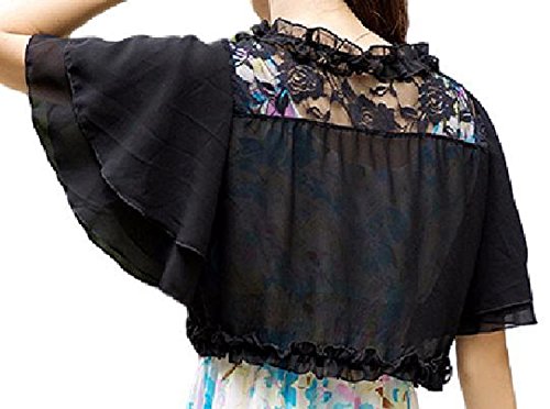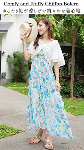 -. Feature : (ワイルドマグノリア)Wild Magnolia 前 サテン リボン 結び 2重 ラッフル スリーブ ボレロ ショート丈 ショール フリル 袖 レース 白 黒 / 【フリーサイズ】身丈32cm、身幅33cm、袖丈23cm、肩幅32cm、リボン長さ33cm / バットスリーブのケープ風のきれいめシフォンボレロです。ふんわりしたシルエットが肩幅と二の腕をカバーするので細見え体型カバーに! / ワンピースにドレスにノースリーブのキャミソール・タンクトップなどに合わせるのに最適です。袖はボリュームのあるデザインなので華奢見せにオススメです。 / ノーカラーできちんと感もありお呼ばれや結婚式、二次会、同窓会、デート、演奏会などで活躍します。ショール、カーディガン、ジャケット感覚で羽織っても。フォーマルにもカジュアルにもガーリー、フェミニンなコーデにも着回しできるお役立ちアイテム。ショート丈なので、脚長効果でスタイルよく見せることができます。