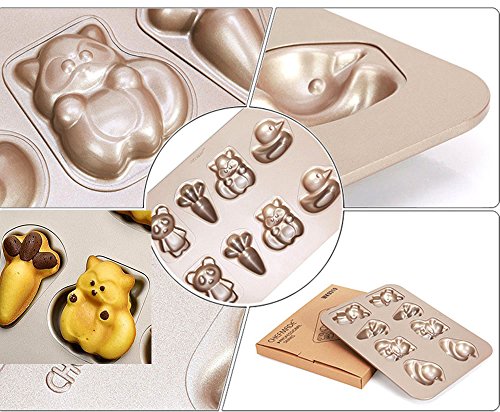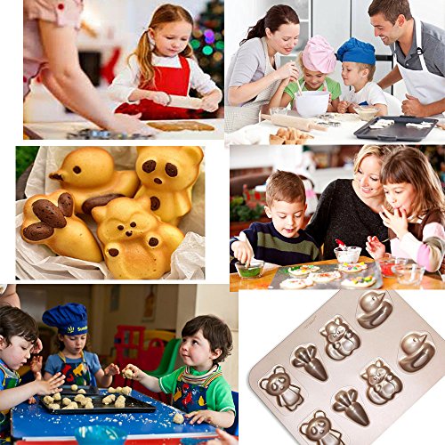 Cartoon Cake Pan muffin Pans Raccoon Pan Duck Bear Carrot Cupcake Pan 8 cativy Non Stick Gold Carbon Steel Cake Mold