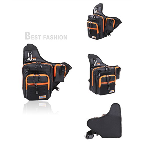 -. Feature : Multi-purpose usage, can hold your fishing tackles like lure pliers, fishing box, rod, etc. / Numerous pockets and compartments for maximum storage. / A padded and adjustable shoulder strap for extra comfort and convenience. / Crafted from waterproof canvas, very durable. / Wonderful companion for anglers.