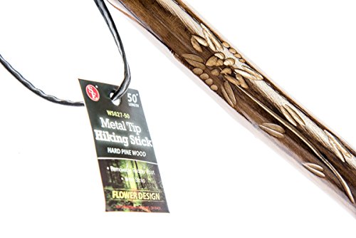 SE WS627-50 Wooden Walking/Hiking Stick with Hand-Carved Flower Design, 50"