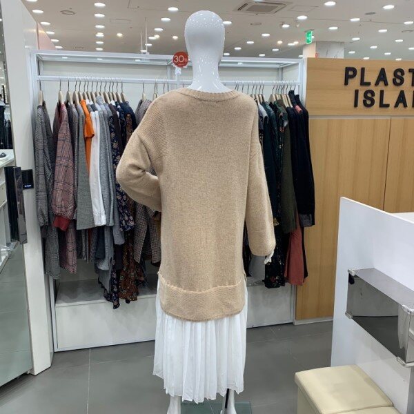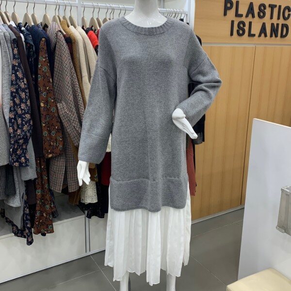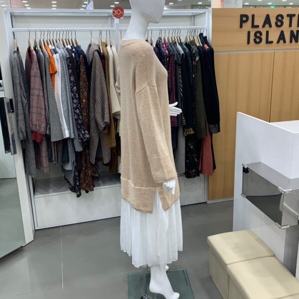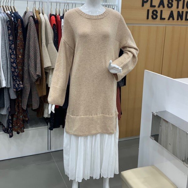 우븐패치니트롱원피스에요^^원피스밑단에 우븐이들어간 박시형 스타일로 사이즈 넉넉하고 좋아요~ 데일리룩으로 좋아요^^가슴단면 약 48m 총기장 약 120cm
