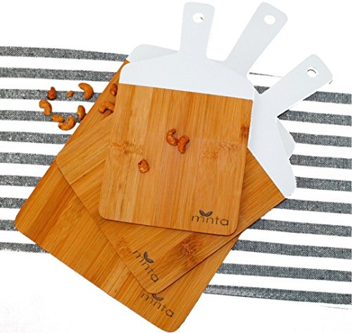 - THE SEARCH IS OVER: Made out of the finest organic bamboo on earth, from the bamboo capital of the world, mnta’s 3-Piece Cutting Board Set is the perfect fit for any quality kitchen or gourmet pizza shop that wants to take their style to the next level. You can also say bye to harmful plastic all over your food.