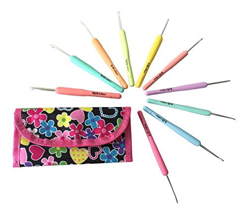 10 Crochet Hooks Set Organizer Case, Ergonomic Aluminum Hooks, Needle Size 2mm 2.2,mm(B) 2.5mm 3mm(D) 3.5mm(E) 4mm(G) 4.5mm(7) 5mm(H) 5.5mm(I) 6mm(J)