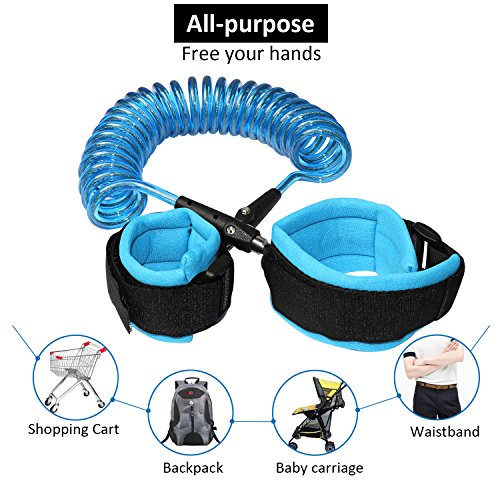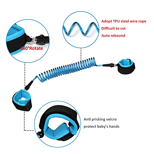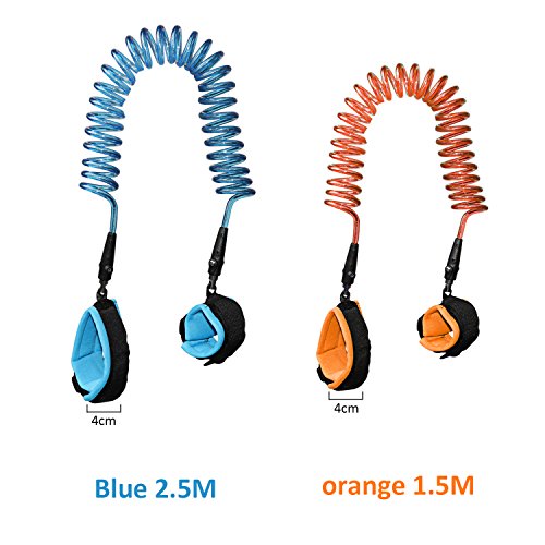 Studio : Supmaker Publisher : Supmaker Binding : Baby Product Product Description Features: - Optional distance control: 1.5m orange links and 2.5m blue links. You can choose according to your child's age, energy level and occasions. - Safe, keep toddlers close, it gives toddlers independence but keeps them safe at the same time. - Comfortable wearing, can't tie hand, convenient storage, automatic springback, no stumble, no floor length. - Unique 360 degree spinning connector ensures no tangles or twists. - Easy to use and fit, both adult and child wrist bands are adjustable. - High-Quality Materials and perfect colors to match your and child's choice. Specifications: - Material: stainless steel wire PP rope ribbon plastic buckle - Age Range: 2 to 12 years old - Stainless steel rotating angle: 360 degrees - Cord total length: orange 1.5 m (approx. 5 feet) blue 2.5 m (approx. 8.2 feet) Package includes: - 1 x Anti lost baby safety belt ( 2.5 m in blue) - 1 X Anti lost baby safety belt ( 1.5 m in orange) Caution: 1. This Anti Lost Wrist Link is only used to prevent the kids from losing, it cannot prevent the kids from falling on the ground and can't be used for training to walk. 2. Parents should keep following the kids closely to avoid pulling their kids since they may lose balance and fall. 0