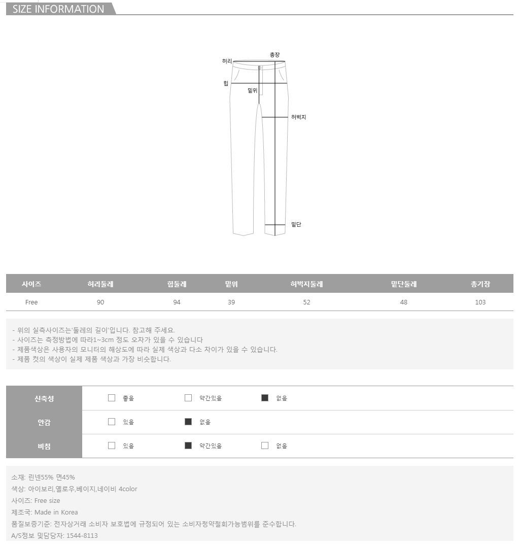 탄탄한 코튼 혼방 소재로 린넨 특유의 까슬거리는 촉감도 어느정도