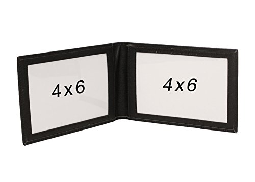 Double 4x6 Landscape Leather Picture Frame - Black