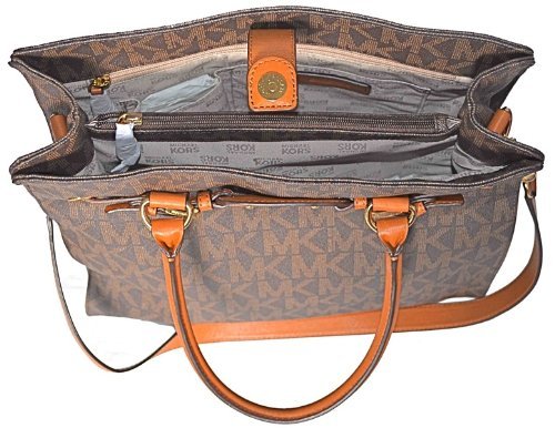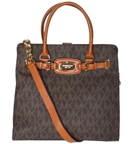 -. Title : MK Signature PVC Hamilton NS Large Satchel Tote Handbag Shoulder Bag - Mocha