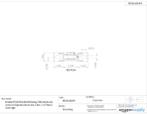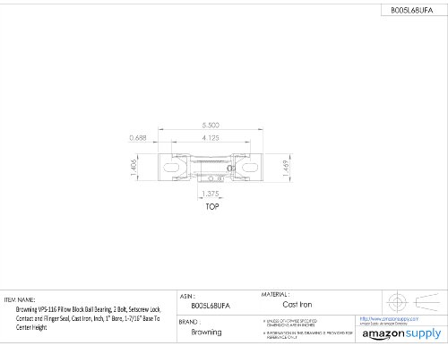 Browning VPS-116 Pillow Block Ball Bearing, 2 Bolt, Setscrew Lock, Contact and Flinger Seal, Cast Iron, Inch, 1" Bore, 1-7/16" Base To Center Height
