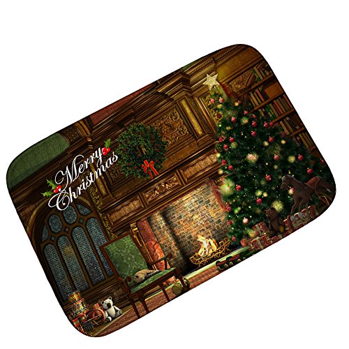 BlueSpace Christmas Mats 3D Printing Doormat Outdoor Indoor Front Door Mats Non Slip Carpets for Bedroom Living Room Kitchen Garden, 2' x 3', Christmas Tree