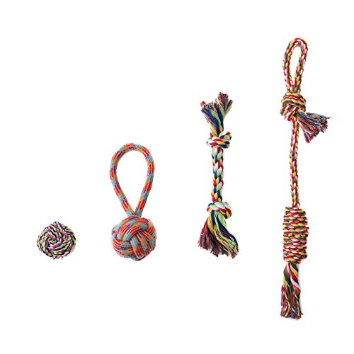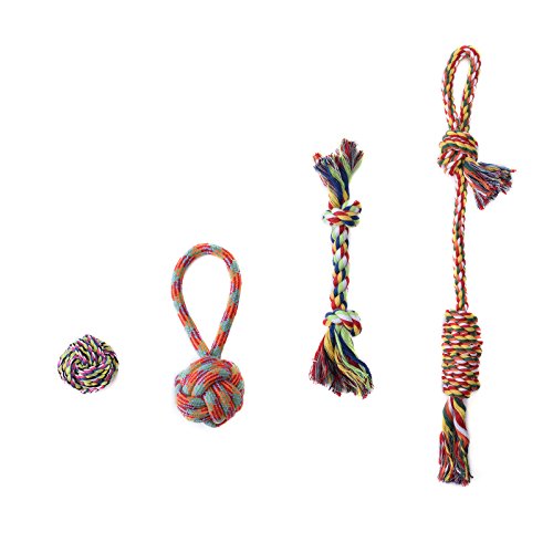 Studio : UPFDL Publisher : UPFDL Binding : Misc. Product Description THE BEST PUPPY TOYS FOR PUPPIES! We all know that nibbling is the nature of the canines, especially when they are puppies their teeth change from baby teeth to permanent teeth. The pups would bite everything they can gnaw -- bed sheets, slippers, sofa, furniture, and so on. At this moment , the puppy teething toys are essential. It not only can improve the doggy's biting behavior, but also can make them happy when they are boring, what's more, the rope chew toys can keep your lovely dogs' teeth cleaning and solid. These funny rope toys are made of high-quality material, which is durable enough that your pets will get great enjoyment. Playing with these various puppy toy set makes your dog enjoy itself all day. If you are looking for a high quality chew rope toys for puppies.This set of rope chew teething toys would be the best choice for you. PRODUCT FEATURES: 1.In your interactions and dogs, the use of Dog Ropes to the toy interest, promotes the feeling of the host and the dog. 2.Grinding is the nature of dogs.Chew Toys can help the dog dog molar, solid and clean teeth. 3.Toys help dog's mental development, make the dog more lively. PACKAGE INCLUDES : - 1*Rope Teething Ball Dog Toy - 1*Double Festival Cotton Rope Puppy Toy - 1* Puppy Chew Rope Ball - 1* Tug of War Dog Rope Toy NOTE: - These rope toys are recommended for puppies, small dogs(under 1 year old would be great) and those are NOTaggressive chewers. - Please avoid providing for the large size dogs, or any aggressive chewers as they are NOT indestructible toys for them. - If a rope toy is disbanded please keep it away from the dogs and Do Not let your beloved dogs swallow the toys. 0