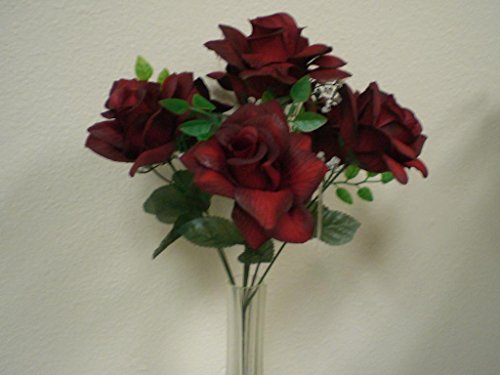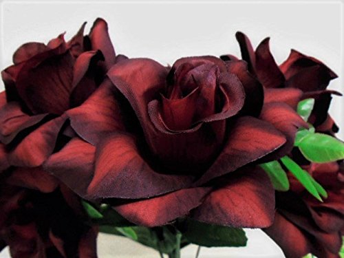 4 Bushes BLACK RED Open Roses 7 Artificial Silk Flowers 15" Valentine Bouquet 039BKRD