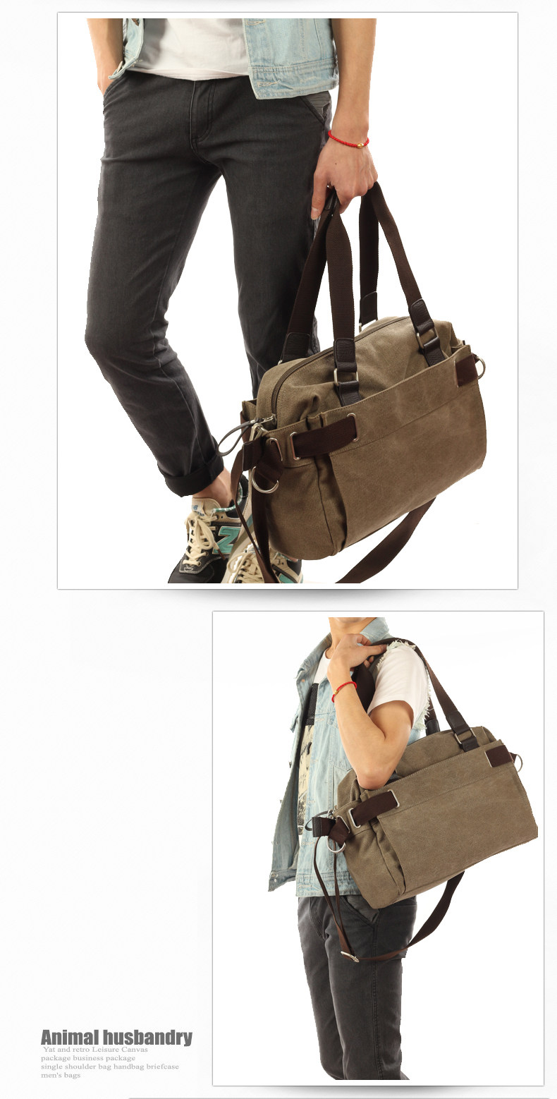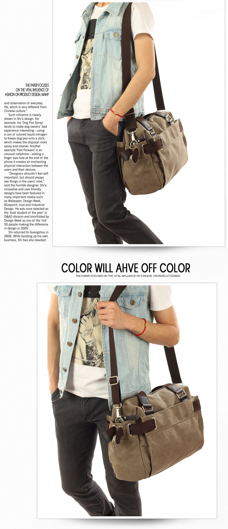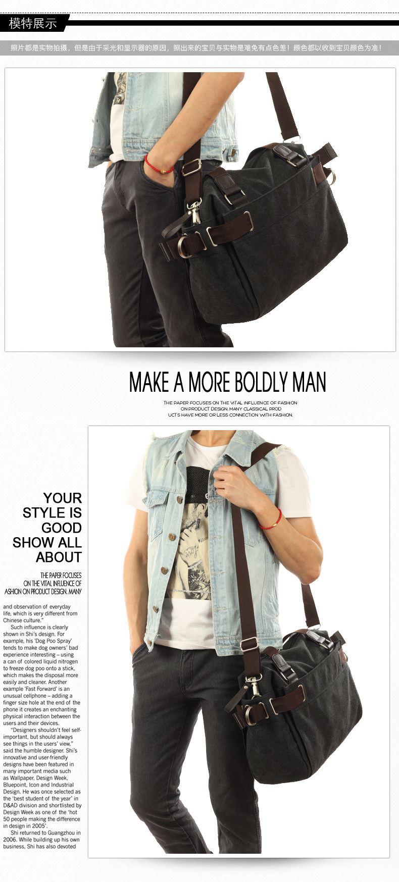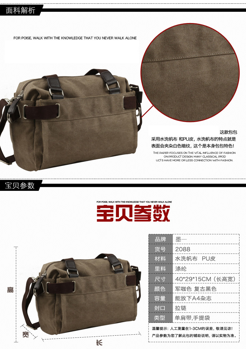 墨一韩版潮流男包休闲帆布包男士单肩包斜挎包 学生书旅行手提包