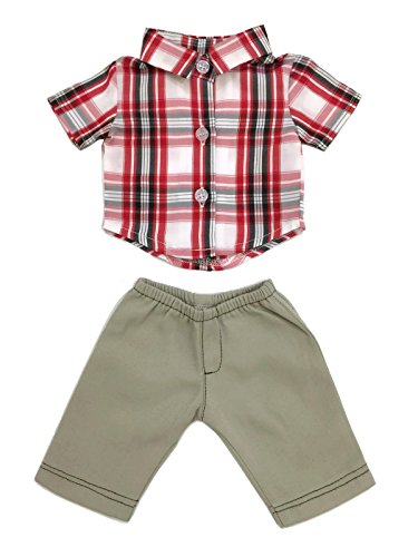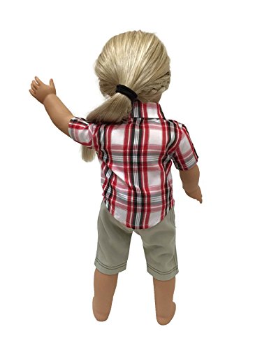 - Designed by and made for Glamerup! This outfit includes a red plaid button-down shirt and a pair of khaki shorts. Shorts have an elastic waist for easy on and off. Great outfit for your special 18" doll or teddy bear.