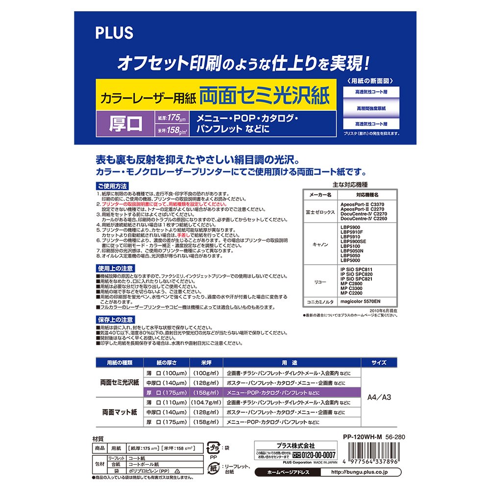 Plus two-sided semi-glossy paper A4 PP-120WH-M 56-280 (japan import)