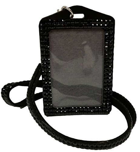 15'' Rhinestone Bling Lanyard with Key Ring and Transparent Vertical Card Holder (Black)