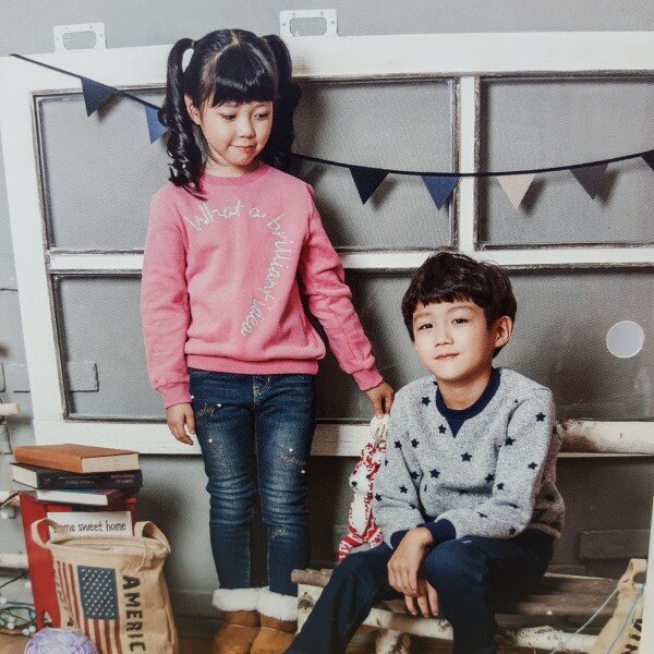 핑크 로고가 나염 되어 있는 맨투맨 티셔츠입니다 청바지와 잘 어울립니다