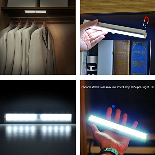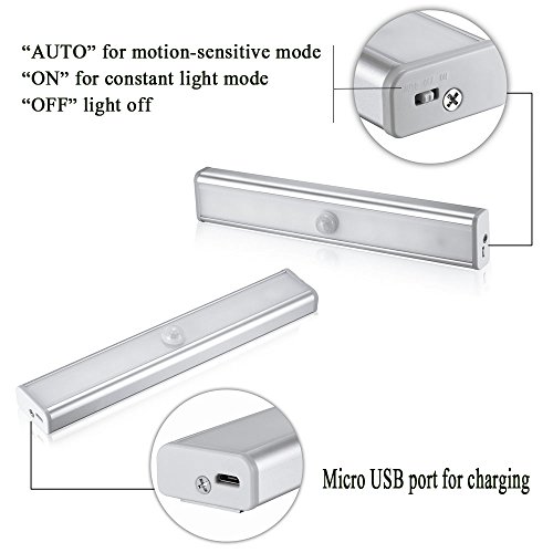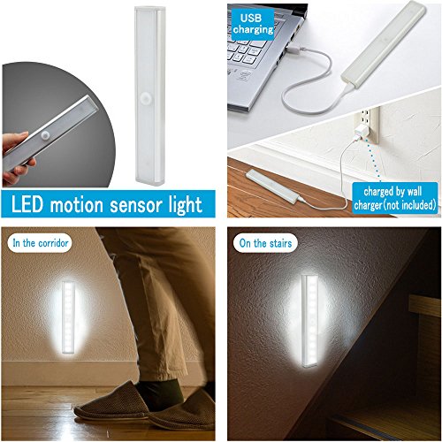 LifBetter USB Rechargeable PIR Wireless 10 LED Motion Sensor Light Bar, Infrared Induction Lamp Stick on Closet Light with ON/OFF/AUTO 3 Switch Modes