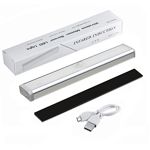 - ► USB RECHARGEABLE INFRARED SENSOR LIGHT - This LED Motion Sensor light is powered by built-in rechargeable lithium-ion battery(included), it is charged with included USB cable by a phone charger, PC USB port, or power bank. No electric wire, no need to replace batteries and one full charge provides up to 500 times of sensing at full brightness. Charging time: about 2 hours; Lighting time: about 3.5 hours(always on)