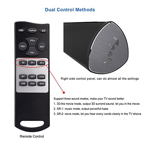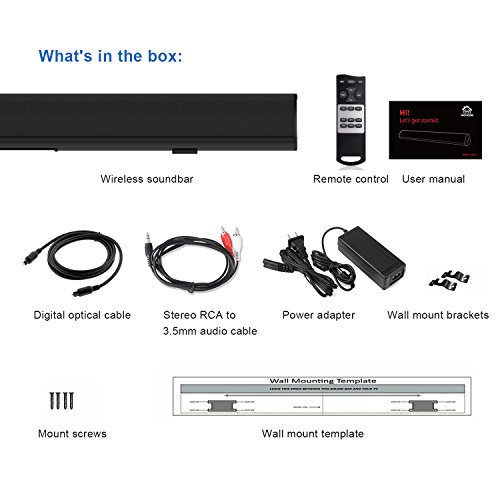 Wohome 2.0 channel wireless bluetooth home surround theater soundbar,38-inch 80watts ,output upto 105db of expansive audio,powerful bass and crystal-clear sound,compatible with computer,projector,PSP,smart phones, almost all the TVs including Samsung/Vizio/TCL/LG/Ondia/Philips/Sony/Etc.