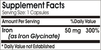 -. Title : Iron Glycinate 50mg ~ 200 Capsules - No Additives ~ Naturetition Supplements