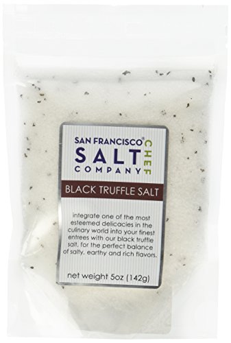 Natural sea salt with infused with black truffles. A wonderful finishing salt for red meat entrees, pasta, potato and egg dishes. Grain size: FINE (0.1mm-0.63 mm). PLEASE NOTE: Not suitable for salt shakers due to size of truffle flakes.