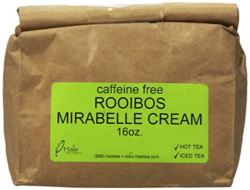 -. Binding : Grocery -. Brand : Hale Tea -. EAN : 0603932070280 -. Feature : 16-Ounces of Loose Tea / From the plum family / Naturally caffeine free; Serve hot or iced. / Bulk food safe bag / Hale Tea Company based in Savannah, Georgia; Traces its roots back to a humble tea shop in London, England in 1872 -. Label : Hale Tea Company -. Manufacturer : Hale Tea Company -. NumberOfItems : 1 -. PackageQuantity : 1 -. ProductGroup : Grocery -. ProductTypeName : GROCERY -. PublicationDate : 2012-06-12 -. Publisher : Hale Tea Company -. Size : 16 Ounces -. Studio : Hale Tea Company -. Title : Hale Tea Rooibos, Mirabelle Cream, 16-Ounce -. UPC : 603932070280