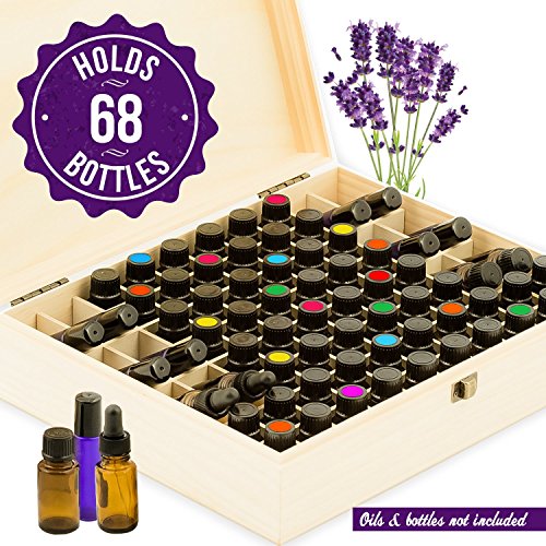 Essential Oil Box Wooden Organizer - Large Wood Storage Case Holds 68 Oils. Protects 15ml Drams & 10ml Roller Bottles - Best for Travel and Presentations. Display doTERRA, Young Living, Plant Therapy