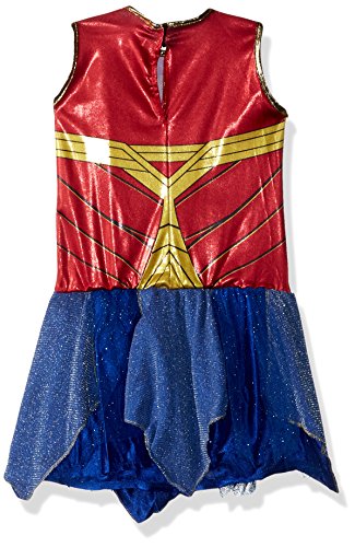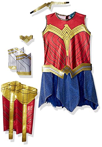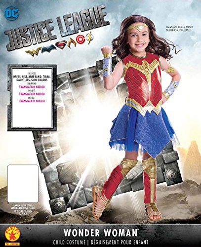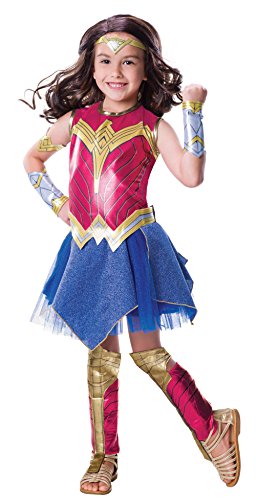 Officially licensed deluxe costume of Justice League wonder Woman from DC Comics. NOTE: costume sizing is different from apparel, be sure to review the Rubie's Costume child's size chart before selecting best option for your child. Rubie's is in business and stocking product 12 months a year; a leading innovator in the industry, Rubie's has the broadest product line of any costume Company. Rubie's has more than 2 million square feet of office, development, warehouse, and production space. Products are manufactured all over the world, with approximately 35% of annual sales produced in Rubie's owned us factories. Same family ownership since the beginning in 1950.Feature