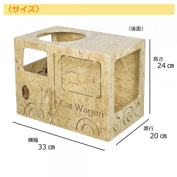 好奇心旺盛な猫ちゃんのためのインテリアプレイボックスです。 製造国:中国 素材・材質:OSBボード 商品サイズ:33×20×24cm 重量:1580g 仕様:内寸:31×18×22.5(cm)組み立て式 付属品:ドライバー、取扱説明書 ※サプライヤー直送品 ご注文後2~3営業日後の出荷となります【商品名】キャットハウス 車型 G-2501N