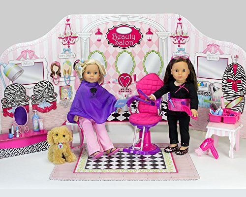 - Feature : 18" Doll Salon Set, Pretend Play Set includes Select pieces sized for the child's hands while the majority of the set is sized for the dolls / 35 Detailed Pieces, Signature Sophia's Style includes doll mirror, doll shampoo & conditioner, doll blow dryer, straightener, curling iron, & comb / Doll Hair Accessories includes Hair Ties, Curlers, Caddy, Mirrors, Lipstick and More! / Made by Sophia's, Leading Doll Clothes, Doll Shoes & Doll Accessory Maker! / 2013 Sophia's- All Rights Reserved; Not affiliated with American Girl, Reg. Trademark of American Girl, LLC