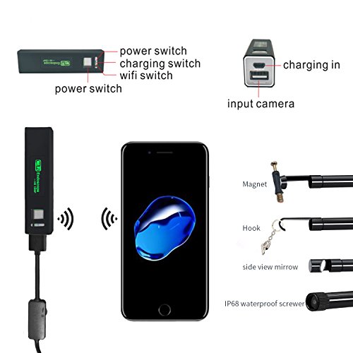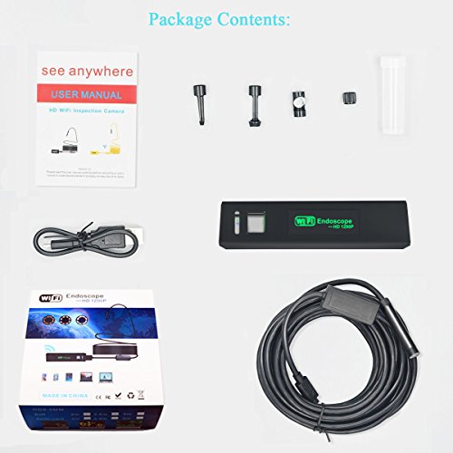 - [Easy To Set Up] Without using extra adapter or cable, this wireless borescope can be easily connected with your smartphone via WIFI, No Network Required. You only need to download and install the compatible APP "HD SEE" on your device, and full charged before the first time use