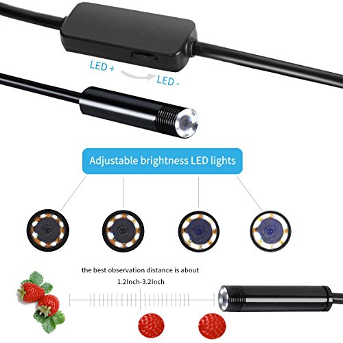 - [Adjustable Camera] 8.5mm diameter camera, 8 adjustable LED light on the camera, it greatly helps to improve image brightness and clarity even in dark or low-ight condition