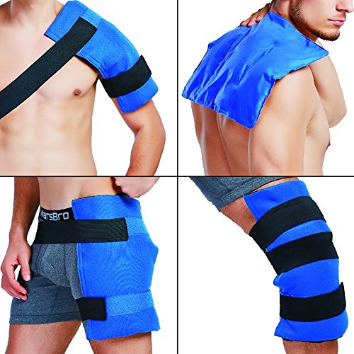 Large Shoulder Back Hip Thigh Knee Gel Ice Pack with Wrap & Elastic Straps for Hot or Cold Therapy, Great for Sprains, Muscle Pain, Bruises, Injuries 14" x11"