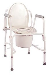 Studio : Sammons Preston Publisher : Sammons Preston Binding : Health and Beauty Product Description Ideal for those with limited dexterity. Easy-to-release dual drop arm mechanism allows for safe lateral patient transfers. Features adjustable legs, with an easy-clean powder coat finish. Has plastic armrests. Includes commode pail with carry handle and splash guard. 0