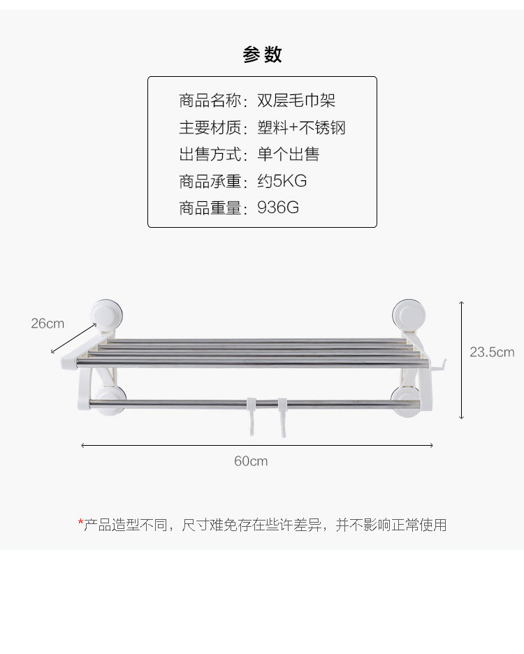 Double towel rack, tack-free installation, self-adhesive sucker, suction force lasting