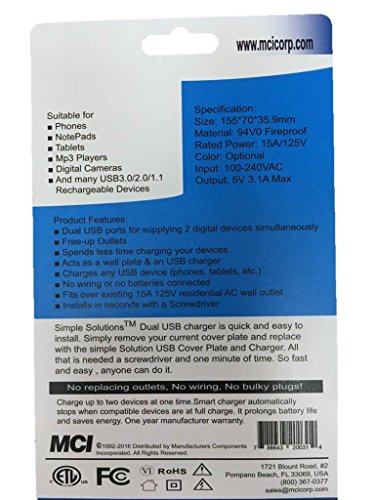 3 PACK also available for $49.99 ASIN# B01N4DO63Y - Smart USB outlet Charging Ports. As easy to install as a wall plate.