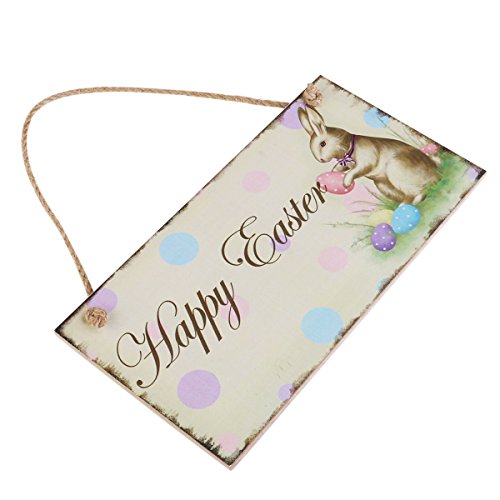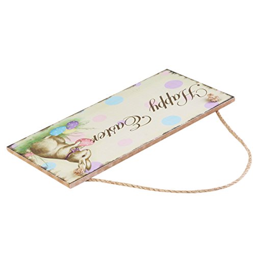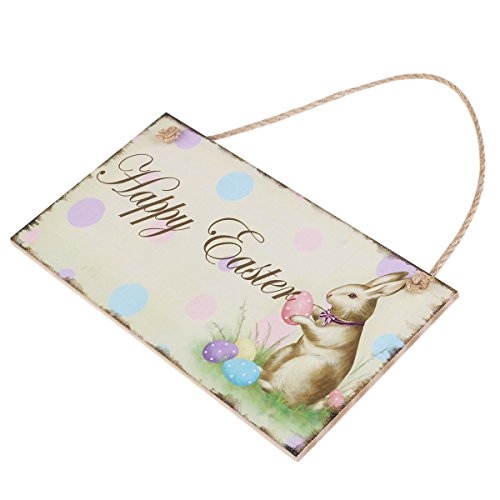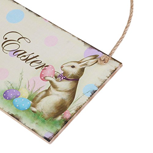 OULII Happy Easter Wood Hanging Plaque Wooden Rabbit Hanging Decoration Sign