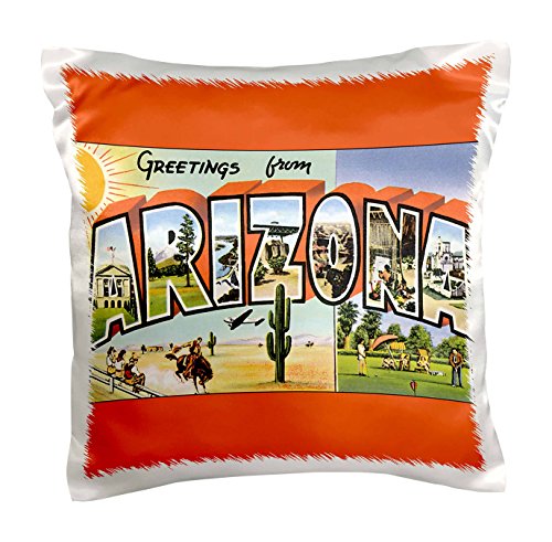 3dRose Greetings From Arizona Scenic Vintage Postcard Design - Pillow Case, 16 by 16-inch (pc_180215_1)