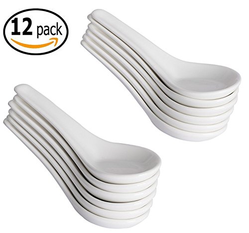Set Contains: 12 x White Ceramic Spoons (Each measures: 5"x1.5") 0