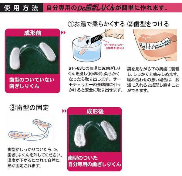 自分の歯型に成形するので、ぴったりフィットします。下の奥歯に装着するので、呼吸の妨げにもなりません。また舌の下に入りますので、睡眠中に飲み込むことはありません。歯ぎしりや噛み締めからあなたの大切な歯を守ります。 |