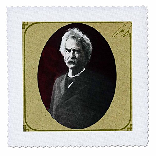 3dRose qs_16153_1 Mark Twain Vintage Magic Lantern Slide Portrait-Quilt Square, 10 by 10-Inch